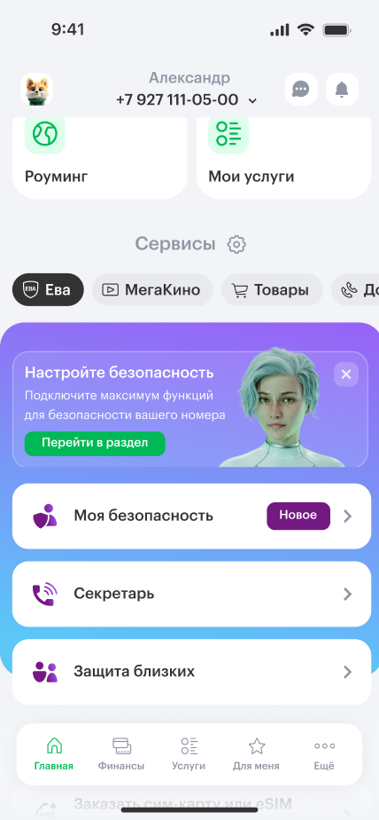 Подключайте Еву в приложении «МегаФон»